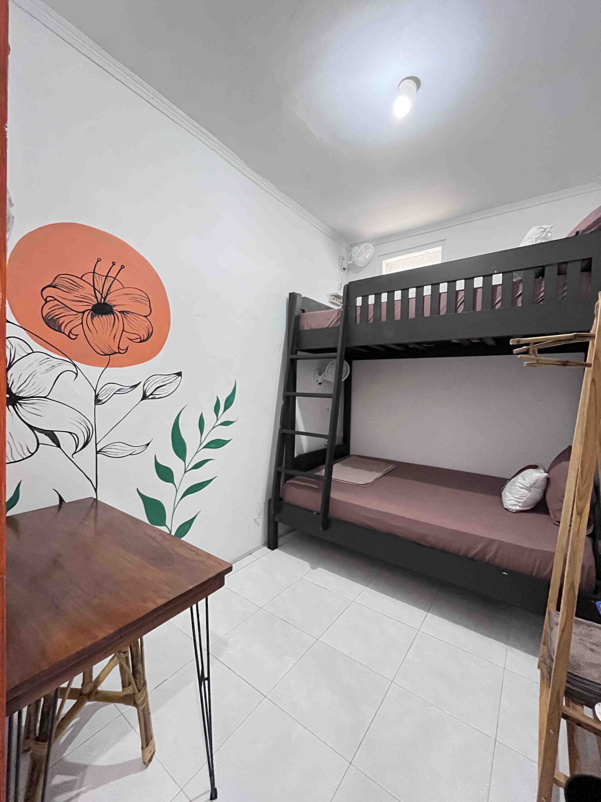 Pilihan kamar beragam—dari Kamar Double dengan kamar mandi pribadi, Kamar Double Budget dengan kamar mandi bersama, hingga kamar asrama dengan 18 tempat tidur berpendingin kipas angin yang cocok untuk pelancong dengan anggaran terbatas. Kamar Twin dan Kamar Quadruple juga tersedia untuk kelompok kecil.